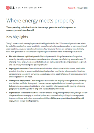 Die globale Wirtschaft befindet sich in einem tiefgreifenden Strukturwandel, geprägt von Elektrifizierung, Digitalisierung und steigenden Energiebedarfen. Diese Entwicklung wirkt sich zunehmend auf die Immobilienmärkte aus, da die Verfügbarkeit von Energie zu einem kritischen Standortfaktor wird. Vor diesem Hintergrund rückt die Rolle von Immobilien als Bestandteil der Energieinfrastruktur stärker in den Fokus. Die Studie „Where energy meets property – The expanding role of real estate to manage, generate and store power in an energy-constrained world“ von JLL untersucht genau diese Schnittstelle. Im Mittelpunkt stehen Fragen nach den Auswirkungen steigender Stromnachfrage auf Immobilienwerte, den Konsequenzen begrenzter Netzkapazitäten sowie den Chancen durch dezentrale Energielösungen. Zudem wird beleuchtet, wie sich Standortentscheidungen, Asset-Strategien und Investitionslogiken im Zuge dieser Entwicklungen verändern.