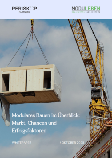 Die angespannte Lage auf dem Wohnungsmarkt, steigende Baukosten und der Mangel an Fachkräften fordern innovative Lösungen im Bausektor. Modulares Bauen gilt als Antwort auf diese Herausforderungen, da es Effizienzgewinne, Kostenreduktion und Planbarkeit verspricht. Das Whitepaper „Modulares Bauen im Überblick: Markt, Chancen und Erfolgsfaktoren“ von Periskop Partners und ModuLeben liefert einen umfassenden Überblick über Marktakteure, Kostenstrukturen, Einsatzbereiche und strategische Erfolgsfaktoren modularer Bauweisen im DACH-Raum.Vor diesem Hintergrund rückt die Frage in den Fokus, welche Systematiken, Materialien und Anbieter modularen Bauens für verschiedene Nutzungstypen besonders geeignet sind. Zudem liefert es eine umfassende Analyse, wie sich Baukosten und Nachhaltigkeitsaspekte in diesem Segment entwickeln und wie der regulatorische Rahmen den Einsatz modularer Systeme beeinflusst.
